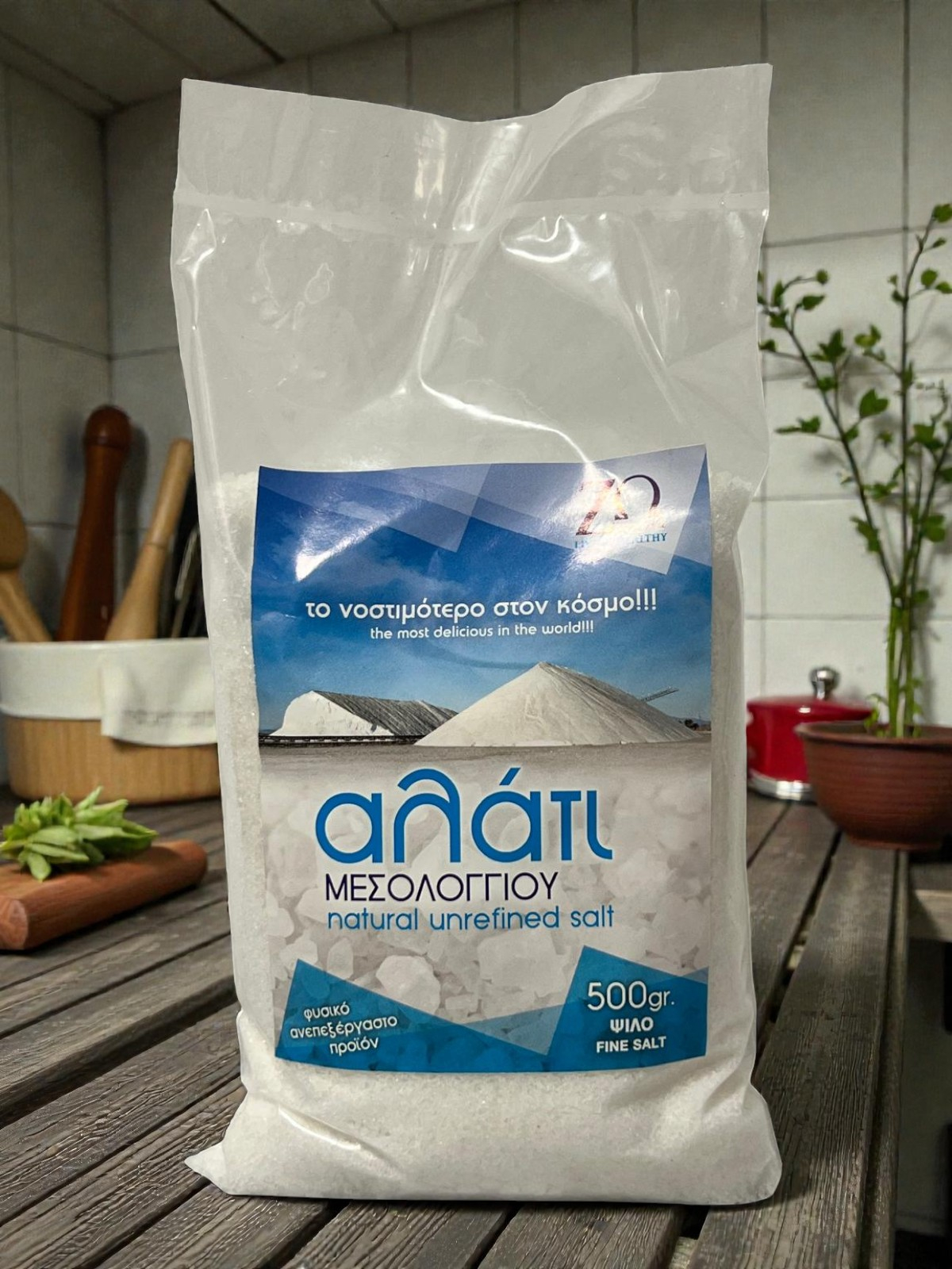 Descoperă esența mării Egee în fiecare granulă! Sarea de mare nerafinată din Messolonghi reprezintă un dar al naturii, extras direct din salinele semi-artificiale protejate ecologic ale lagunei Messolonghi, o zonă declarată Rezervație Ramsar – un colț neatins de poluare din vestul Greciei. Această sare, 100% naturală, nu suferă nicio procesare suplimentară în afară de o simplă spălare pentru a deveni comestibilă, păstrând astfel mineralele esențiale și gustul intens, sărat al apei mării mediteraneene. Fără iod adăugat, fără aditivi, fără conservanți – doar puritate absolută, așa cum a creat-o natura.