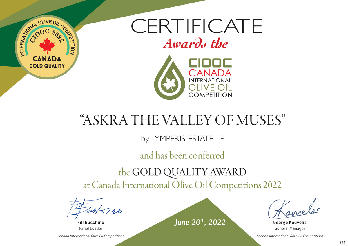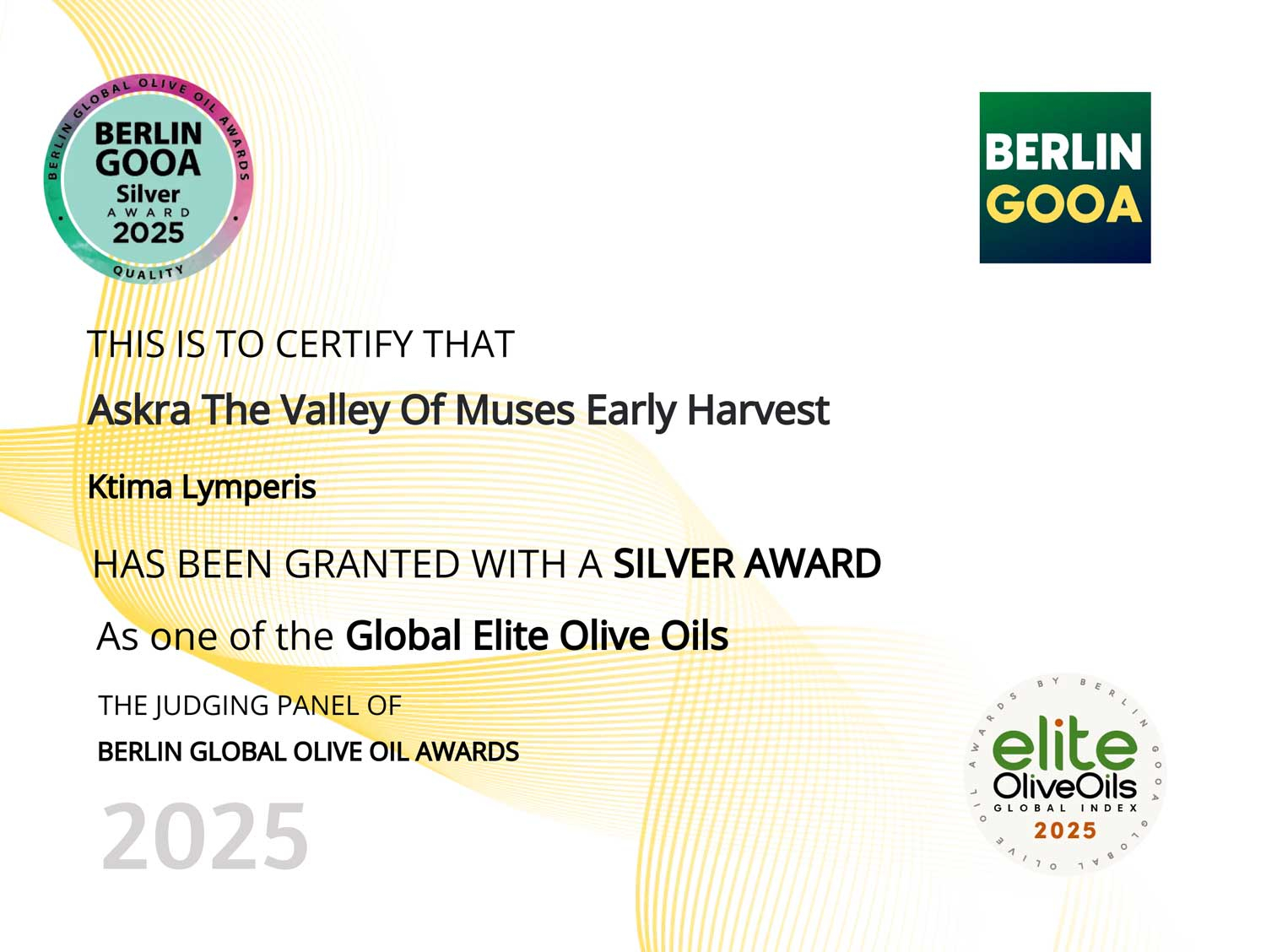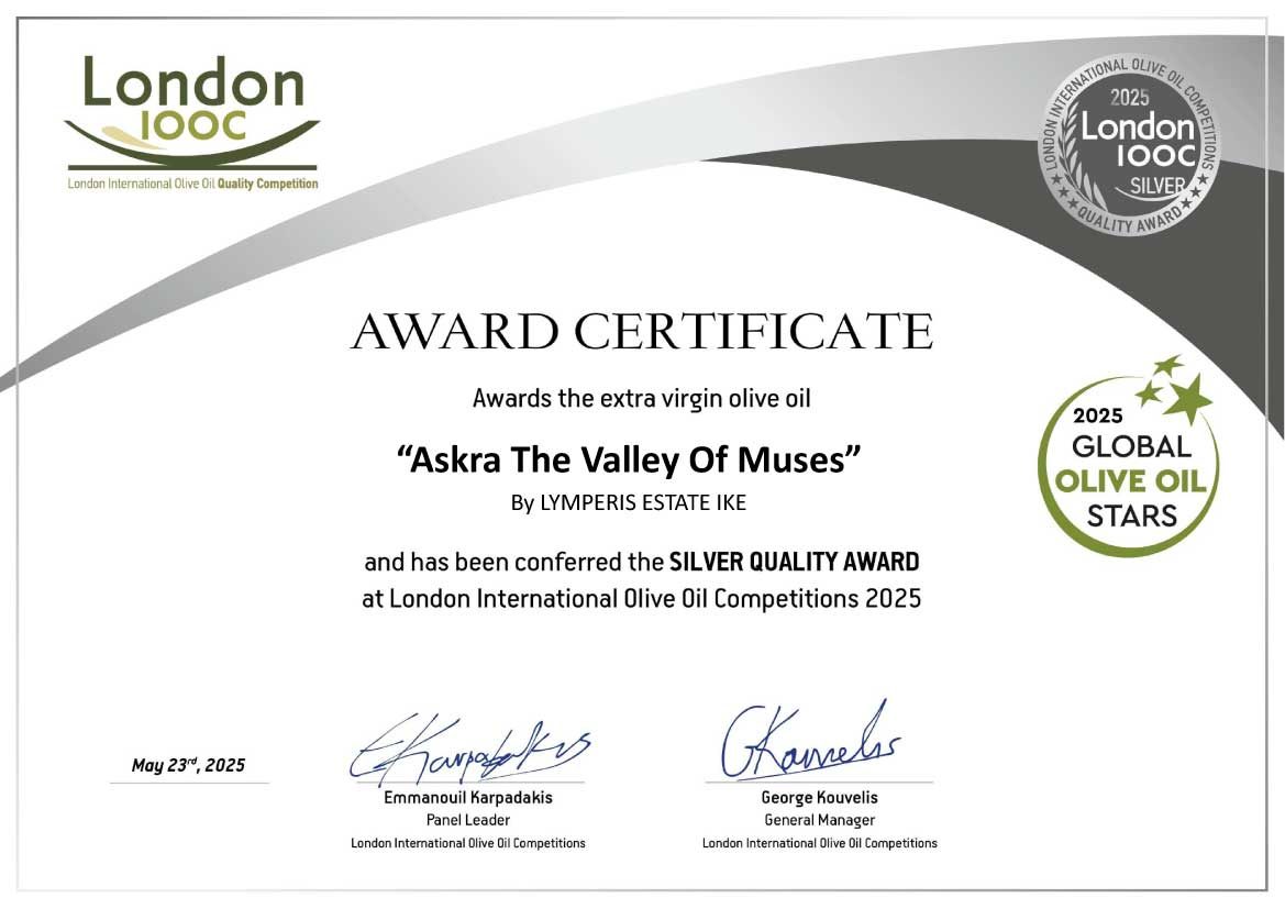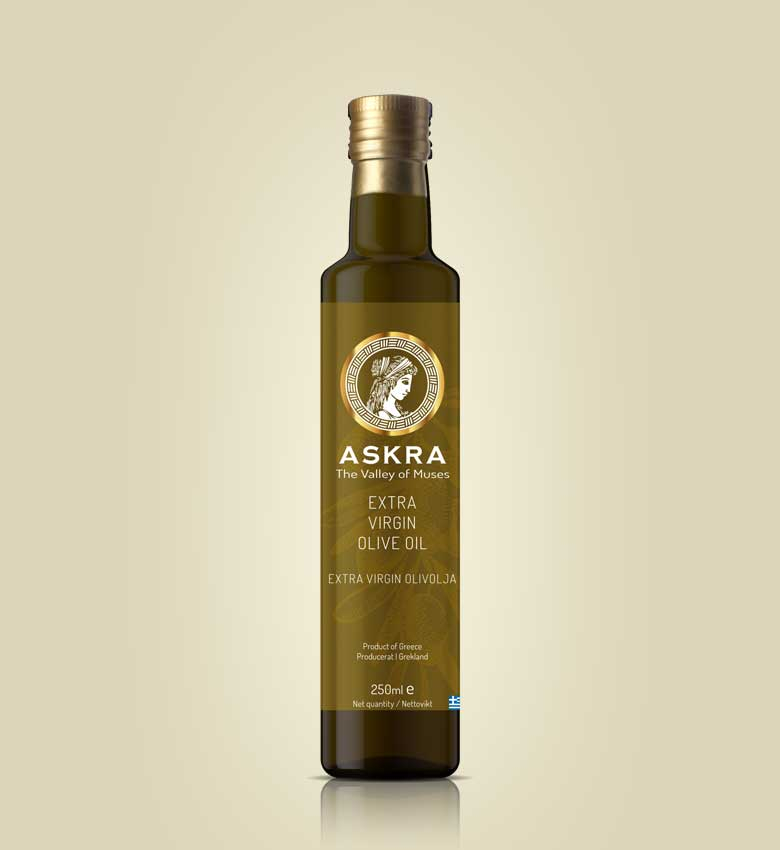 ASKRA - The Valley of Muses este rodul unei moșteniri familiale profunde, începută cu generații de cultivatori de măsline în Grecia. Fondat de familia Lymperis, cu rădăcini puternice în comerțul cu ulei de măsline, estate-ul a fost creat pentru a controla întregul ciclu de producție: de la plantarea măslinilor până la îmbutelierea finală. Situat în satul Askra, pe coamele Muntelui Helicon – loc sacru al muzelor, sursă de inspirație pentru poeți și artiști antici –, moșia îmbină tradițiile străvechi cu tehnologii moderne de extracție.