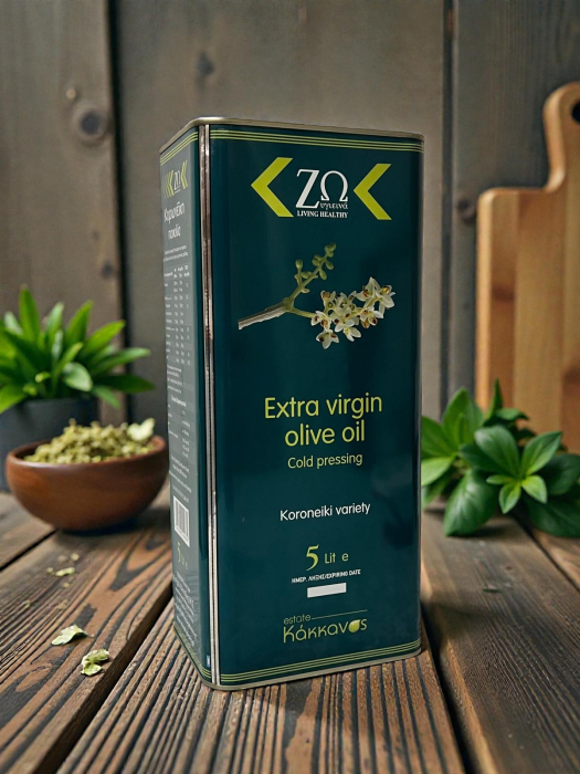Produs de Estate Kakkavos I.K.E., un producător grec de familie din regiunea Messolonghi (Grecia), acest ulei de măsline extravirgin este obținut exclusiv din soiul Koroneiki – considerat „regina măslinelor” în Grecia, renumit pentru calitatea superioară și conținutul ridicat de polifenoli (antioxidanți naturali).